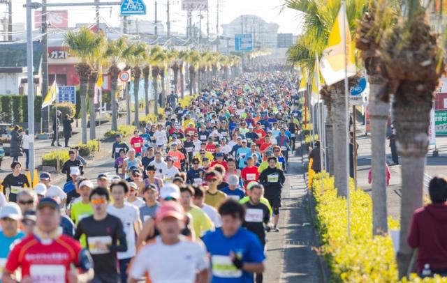●スタート (1)=フルマラソン 午前9時00分(ふれあいプラザなのはな館北側駐車場前) (2)=ファンランニング フルマラソンスタート後(フルマラソンと同じ) ●記念品引換(記念Tシャツ) 2026年1月10日(土) 午後 2時00分~ 5時30分(総合体育館) 1月11日(日) 午前 6時30分~ 8時00分、 午前11時00分~18時00分(総合体育館) 上記の日程で記念品引換を行います。当日の混雑防止のため早めの引き換えをお願いいたします。 ※(1)・(2)とも、引換にはゼッケン(アスリートビブス)が必要です。 ●受付 (1)・(2)とも、今回、アスリートビブスを事前送付するため、受付は行いません。 スタート時刻の30分前(8:30)までにスタート地点へ集合ください。 大会当日は大変混雑いたします。通常より1~2時間余裕を持ってお越しください。 ※当日の参加申込はできません。 ●開 会 式 午前8時30分 ● 表 彰 式 午後12時30分(競技場内)※フルマラソンのみ |